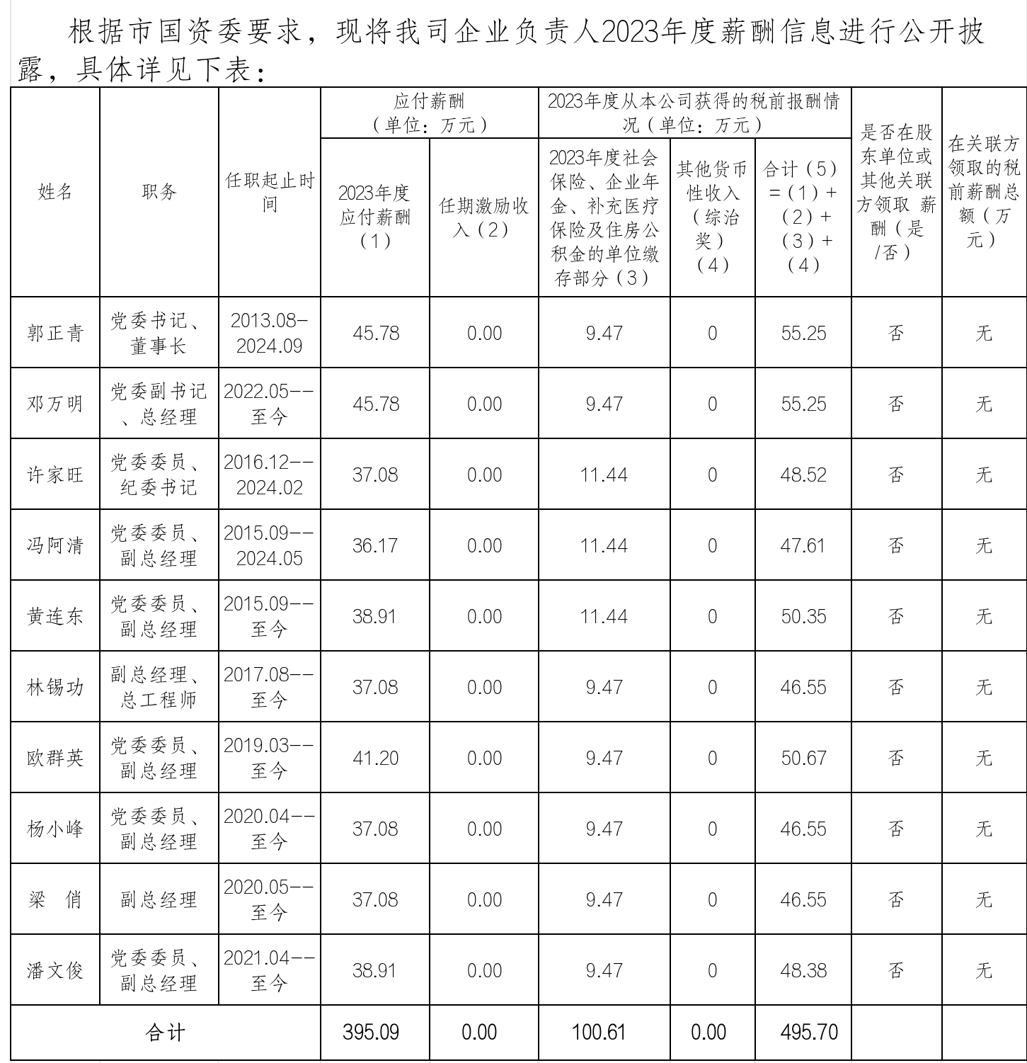 2023年度市城發(fā)集團企業(yè)負責人薪酬信息披露表