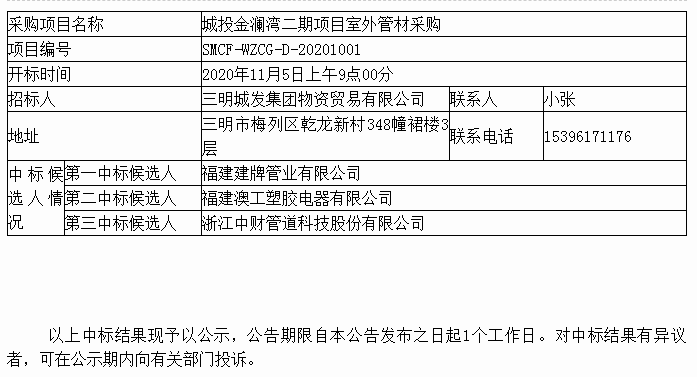 城投金瀾灣二期室外管材采購中標(biāo)公告