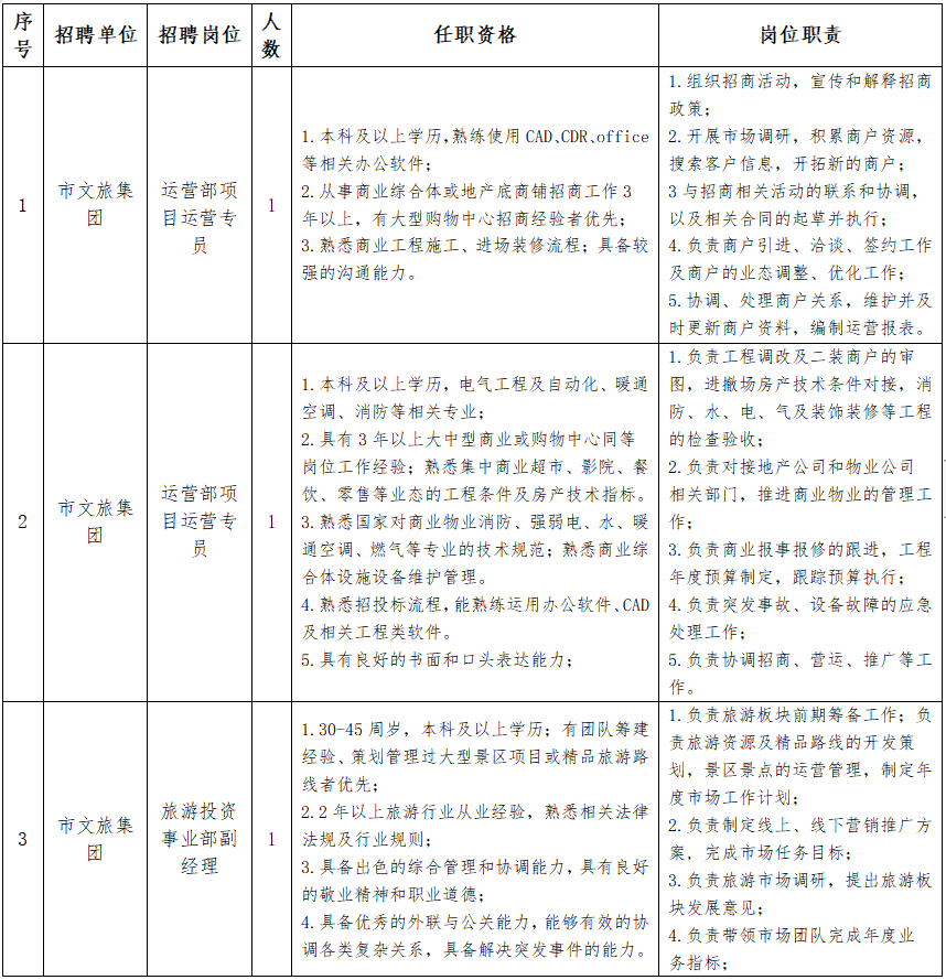 因工作需要,三明城發(fā)集團(tuán)權(quán)屬企業(yè)面向社會(huì)公開招聘,具體如下: